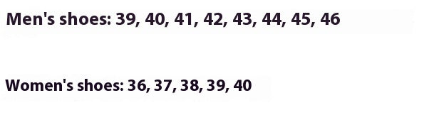 Size: 36,37,38,39,40,41,42,43,44,45,46